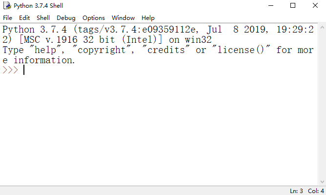 点击IDLE后,我们会进入Python的Shell界面。在提示符>>>后面我们可以输入Python的指令或运算式子,也是可以看到运行结果的。