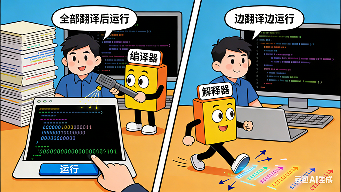 编程语言就像一座特别的桥,一边连着我们,一边连着计算机。我们用它写下简单的指令,计算机就 能看懂并完成任务啦!不过,不同的编程语言性格不一样,有的跑得快,有的学得快,这和它们的 “工作方式” 有关哦。