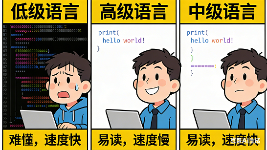 编程语言还分 “高级” 和 “低级”,就像说话一样,有的直白,有的难猜。