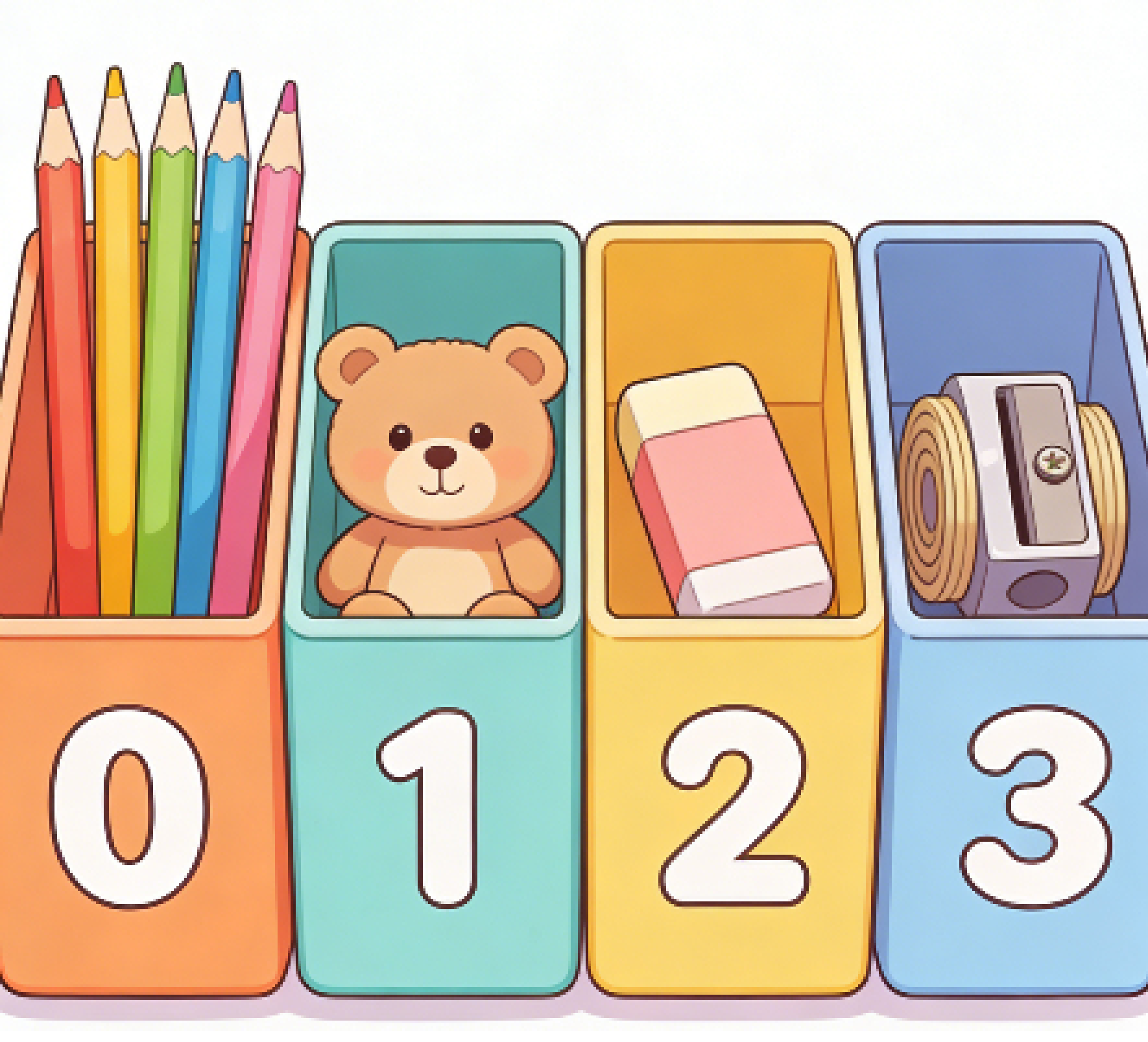 想像一下,有4个抽屉排成一排。你可以往每个抽屉放不同的物件(小玩具或文具)。你还给这4个抽屉编了序号,序号从0开始。分为0-3号抽屉。你想拿物件时,只需要说出物件所存放的序号即可。 这四个抽屉就是一个数组。抽屉[0]:铅笔;抽屉[1]:小熊;抽屉[2]:橡皮抽屉[3]:削笔刀。